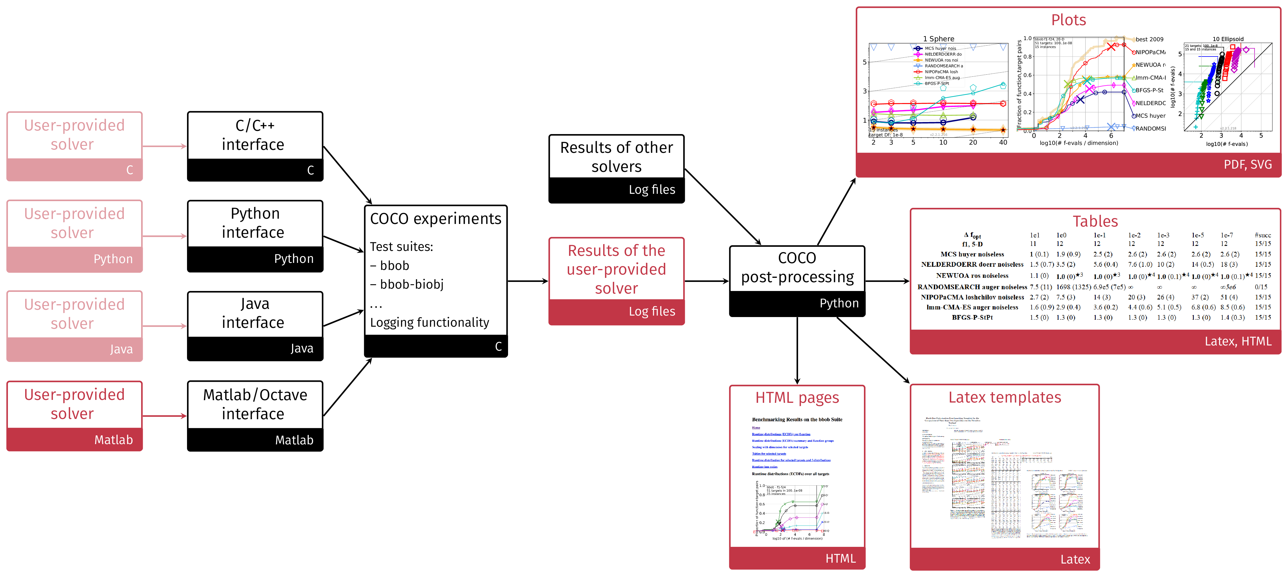 For a general introduction to the COCO software and its underlying concepts of performance assessment see Hansen et al. (2021). For a detailed discussion of the performance assessment methodology see Hansen et al. (2022). For getting started see Getting Started.